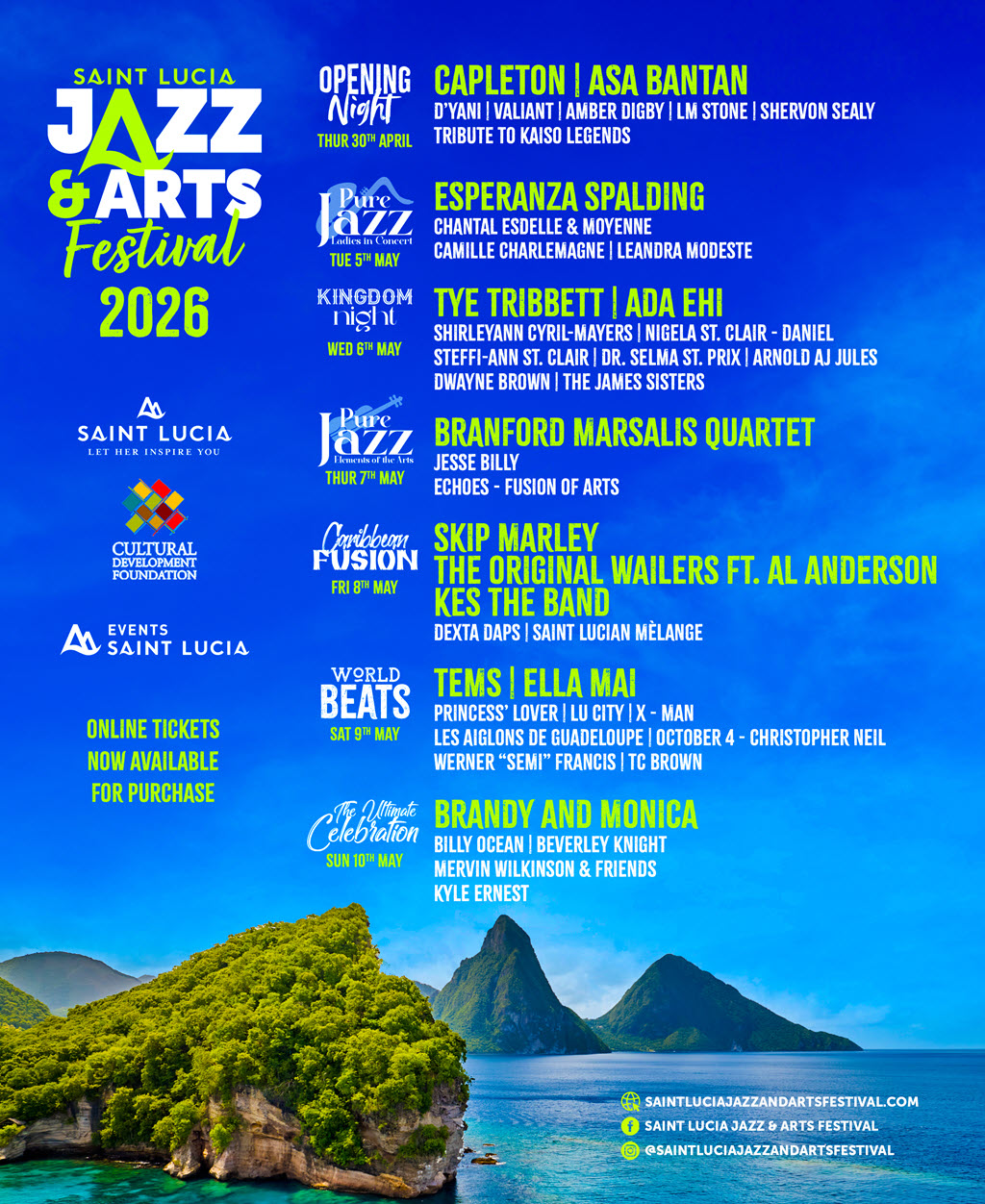For more information and updates, visit www.saintluciajazzandartsfestival.com and follow Saint Lucia Jazz & Arts Festival on Facebook and Instagram.